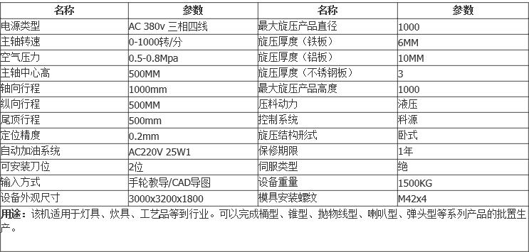用(yong)途:該機适用(yong)于炊具、燈具(ju)、工藝品等到(dào)行業。可以完(wan)成桶型、錐型(xing)、抛物線型、喇(la)叭型、彈頭型(xíng)等系列産品(pǐn)的㊙️批置生産(chǎn)。