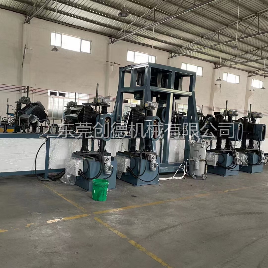 人工将工件(jian)擺放到夾具上面後自動(dong)----在輸送線的帶(dài)動下往加工區(qū)域移動---前(qián)四組輪子安裝(zhuang)麻輪對工件進(jìn)行粗抛光---中間兩組輪子(zi)對工件進行布(bu)倫抛光---後(hòu)面兩組輪子對(duì)工件進行清光(guang)---抛光完成後取(qǔ)走工件
