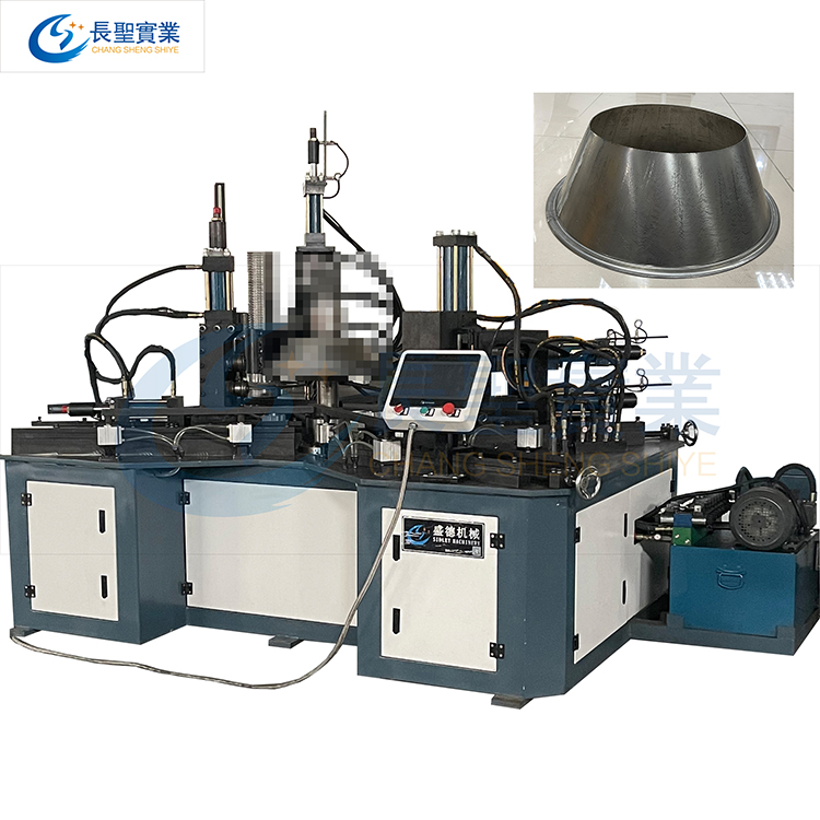 設備(bei)說明:該款錐筒(tong)翻邊機設備主(zhu)要針對真空上(shàng)料椎筒體外殼(ke)和振動篩錐桶(tong)外殼的 法蘭翻(fan)邊成📞型。